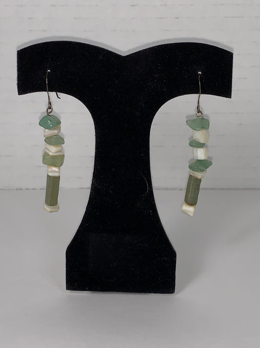 Green Aventurine, Amazonite, and Mother of Pearl Dangle Earrings