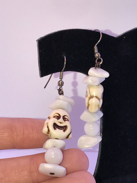 Laughing Buddha and Snowy Quartz Earrings