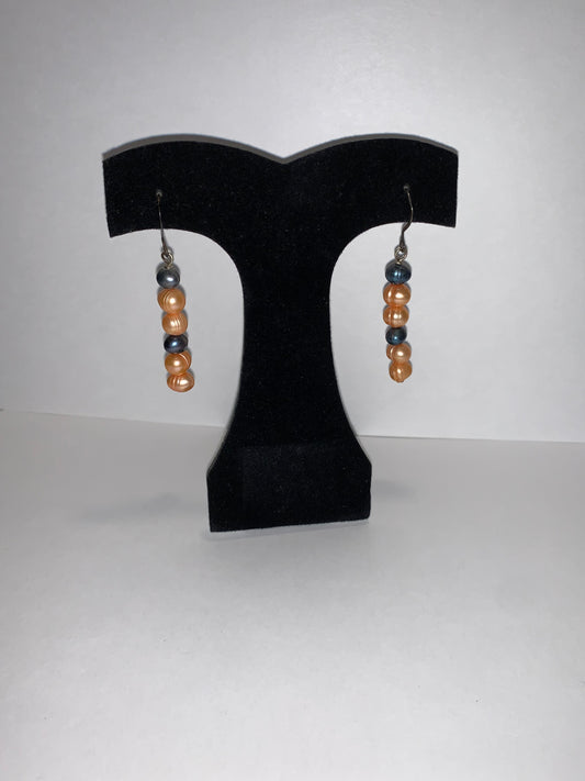 Orange and Blue Freshwater Pearl Dangle Earrings