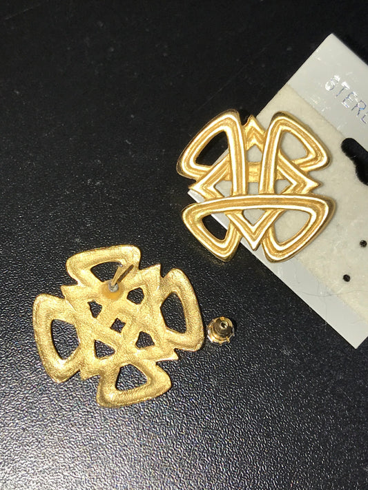 Vintage Gold Tone Square Knot Design Post Earrings
