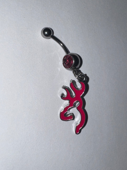 Hot Pink Browning Dangle Belly Ring with a Pink Gem