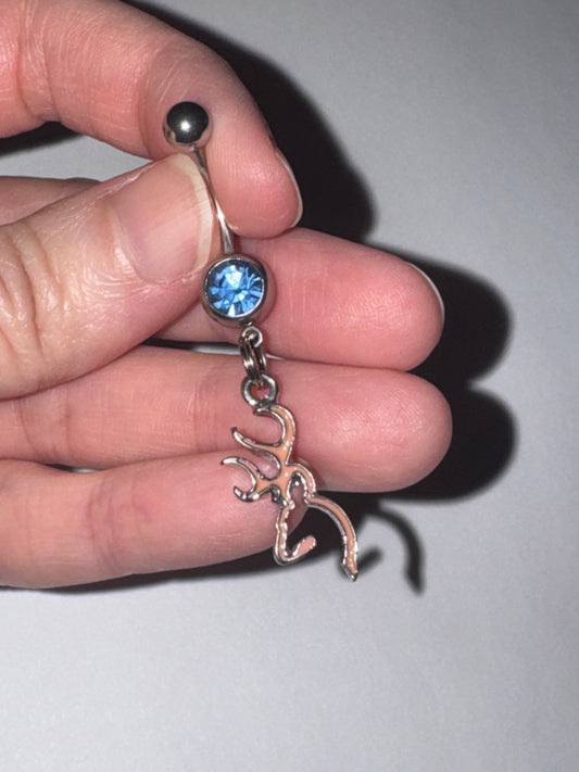 Navy Blue Buck and Doe Love Browning Dangle Belly Ring