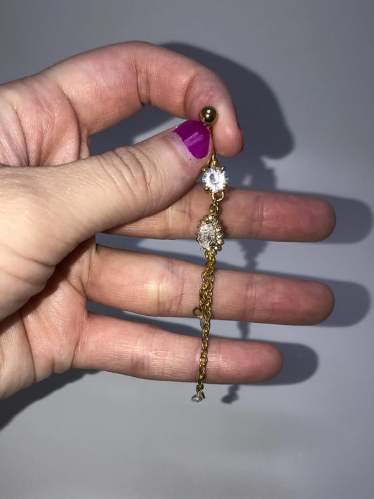 18kt Gold Plated Dangle Belly Ring With Cz Gemstones