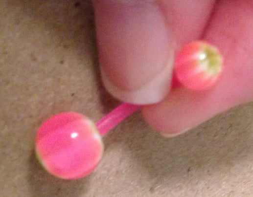 14 Gauge Pink and Green Pot Leaf Belly Ring