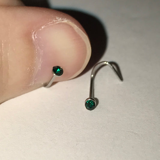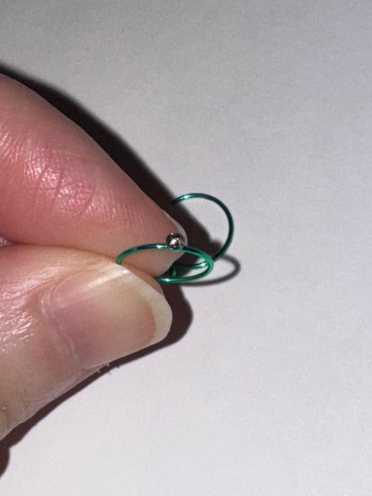 White with Green Pot Leaf 18 Gauge C-shaped Nose Ring