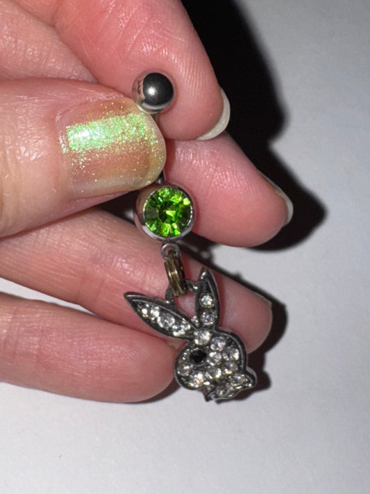 Clear Rhinestone Play boy-looking Bunny Dangle Belly Ring