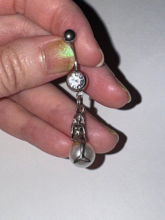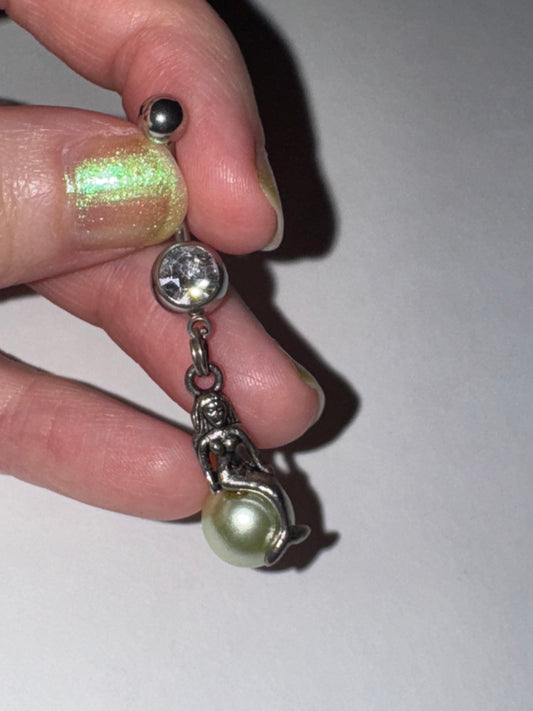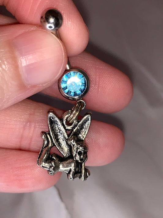 Tink Fairy with Aqua Blue gem, Fairy Design Dangle Belly Ring