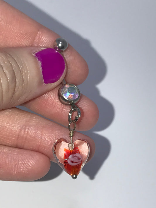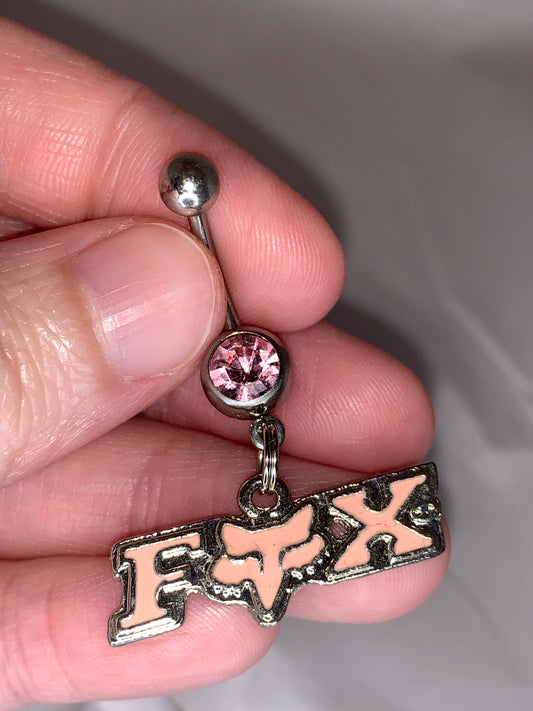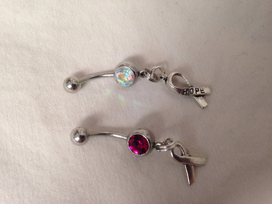 Hot Pink Awareness Ribbon Dangle Belly Ring