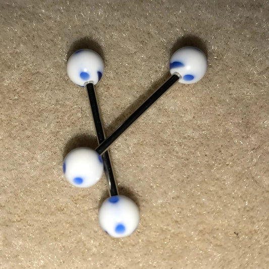 14 Gauge White and Pink Polka Dot Tongue Ring