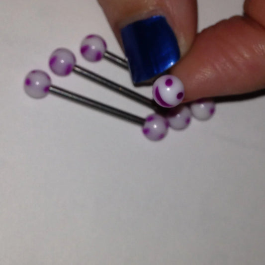 14 Gauge White and Purple Smiley Face Tongue Ring