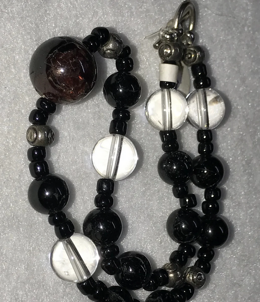 12" Long Garnet And Obsidian Anklet