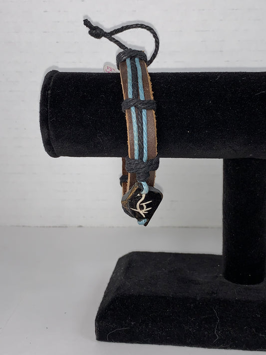 12" Long Leather Bracelet with Blue Hemp detail