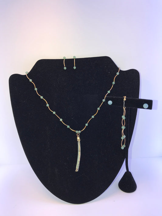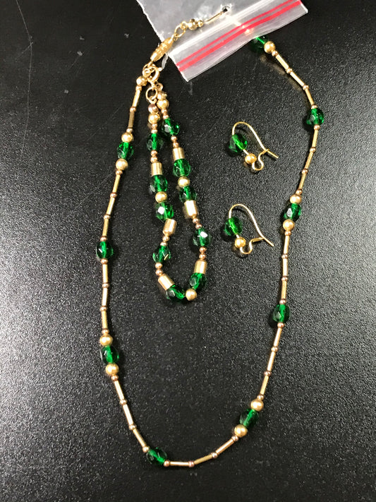 15 1/2" Green and Gold Necklace Set