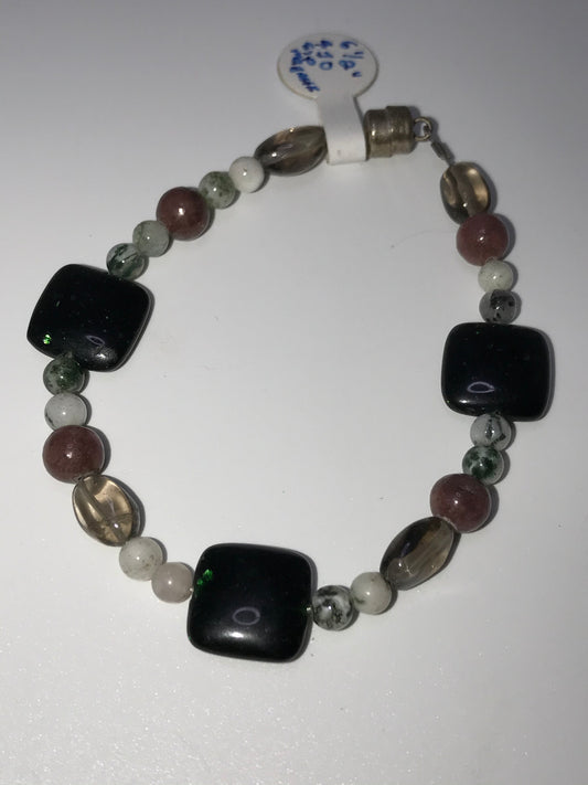6 1/2" Green Goldstone, Quartz, and Rhodonite Bracelet