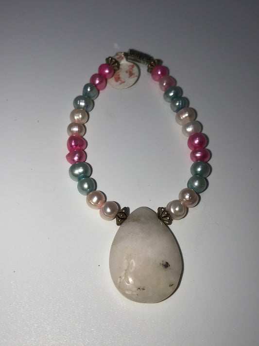 7 1/2" Freshwater Pearl And Opal Handmade Bracelet
