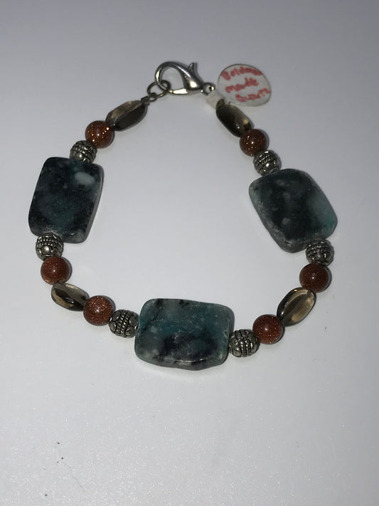 7" Marble, Gold Goldstone And Smoky Quartz Bracelet