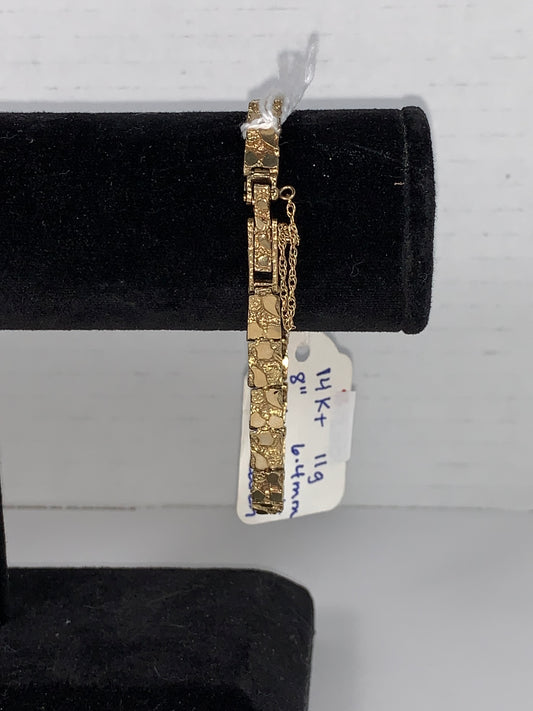 8" 10 Kt Gold Nugget Bracelet w/chain catch