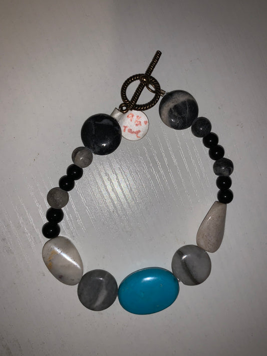 9 1/2" Long Marble and Turquoise Anklet Or Bracelet
