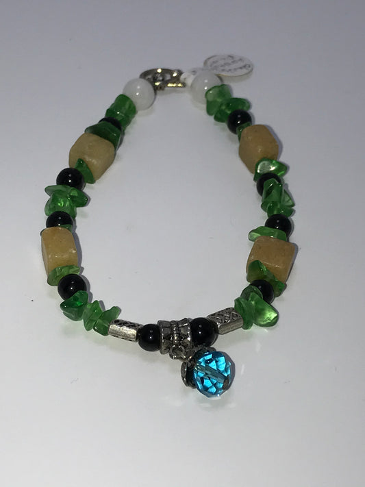 9 1/4" Snowy Quartz and Green Glass Bracelet