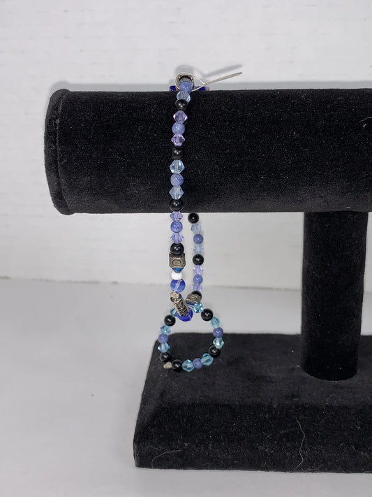 8" Long Denim Lapis and Obsidian Bracelet Set