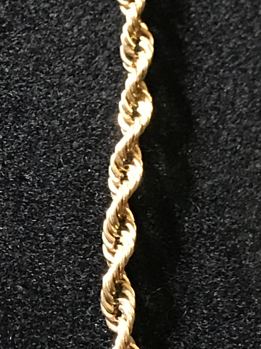 8 1/2" Long 14 Kt Gold Rope Chain Bracelet