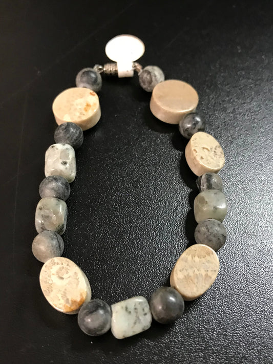 8" Grey line Marble and Coral Bracelet