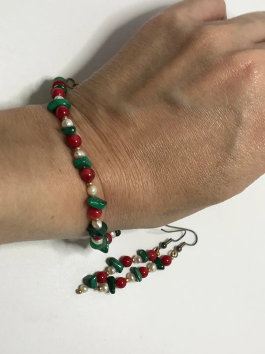 8 1/2" long Christmas Colored Bracelet and matching dangle earrings