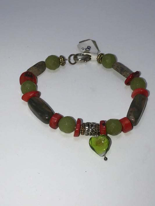 Sold out8" Coral and Jade Bracelet
