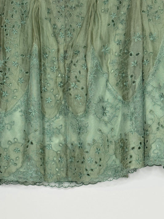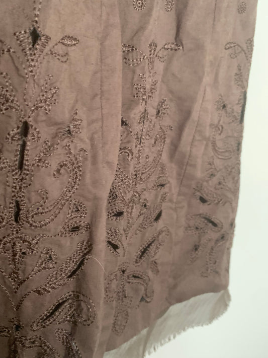 Tahari Embroidered Eyelet A-Line Maxi Skirt Chocolate Brown Sheer Hemline, Size 6