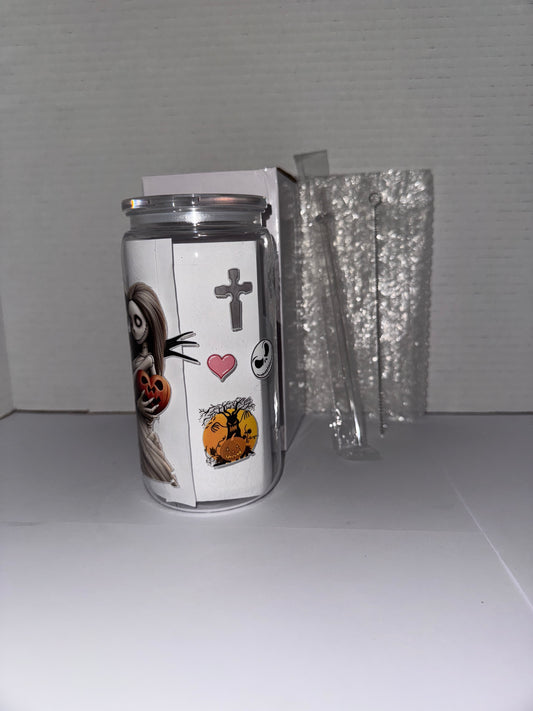 Halloween Wedding Themed 16 Oz Plastic Cup With Love Hearts, damaged
