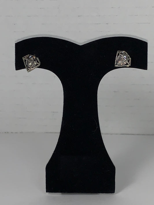 Silver Diamond Shaped Rhinestone Stud Earrings
