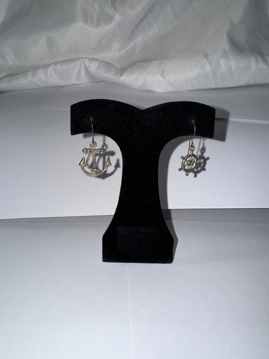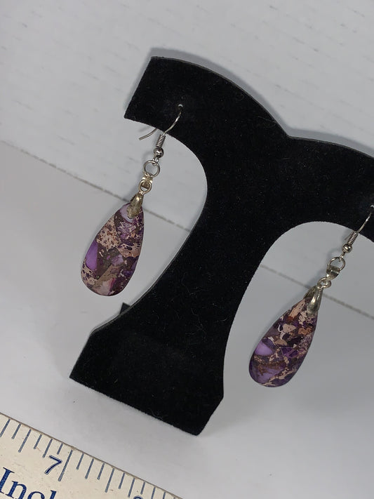 Round Blue and Brown Capiz Shell Dangle Earrings