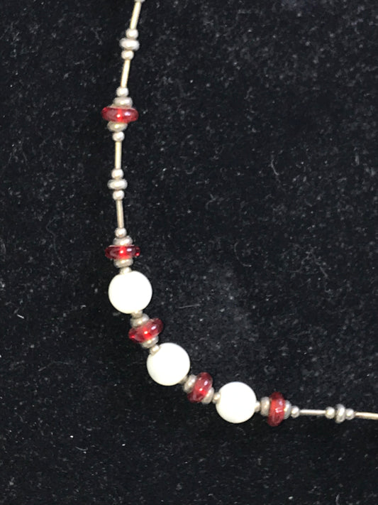 Sold out16" Red And White Beaded Necklace
