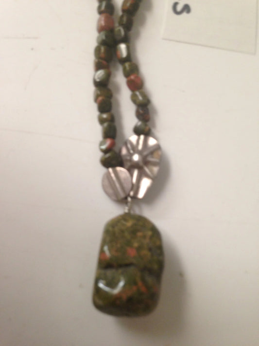 16" Unakite and Silver Necklace