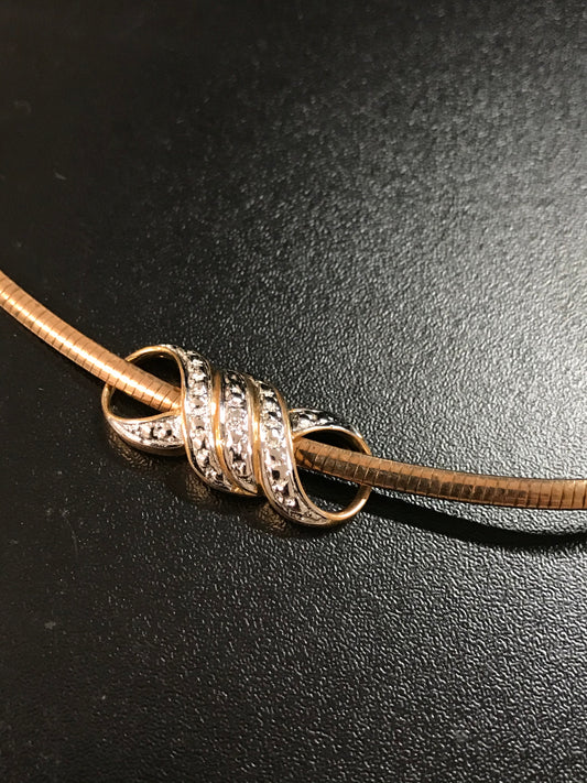 17" 18Kt Gold Vermeil Omega Necklace and OXO Diamond Accent Pendant