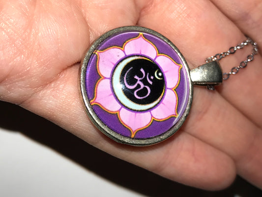 17 1/4" Purple Ohm And Lotus Necklace