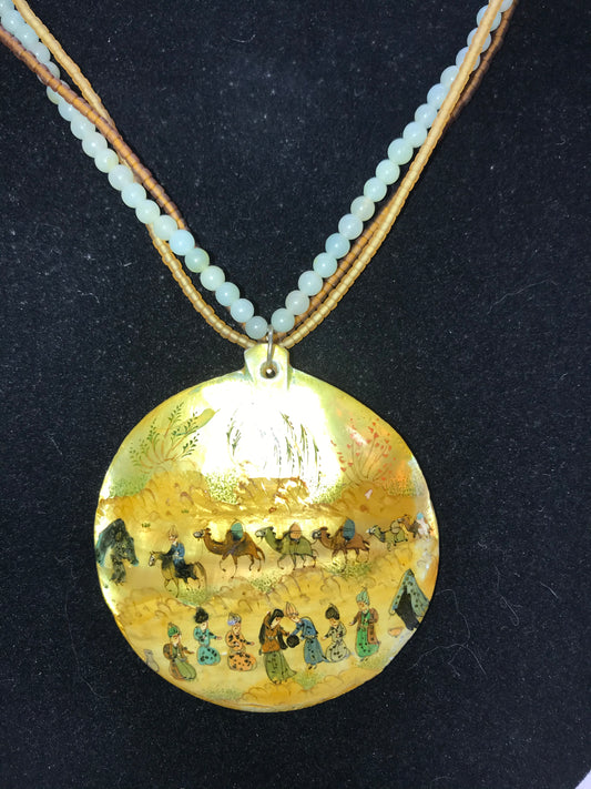 17" Long Multi-strand Mother of Pearl and Jade Necklace