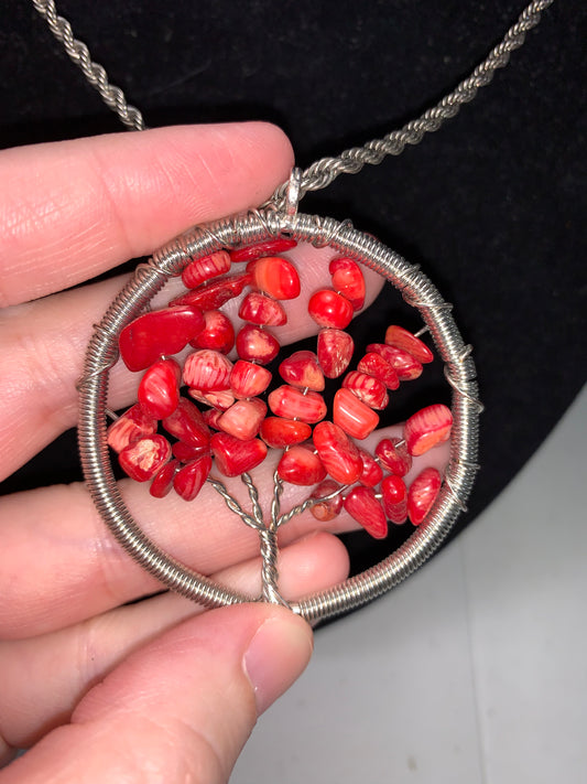 18" 4mm Rope chain with Red Coral Tree of Life Pendant