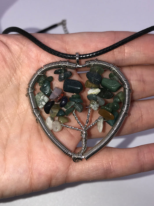 18" Agate Heart Wire wrap Tree Of Life Necklace