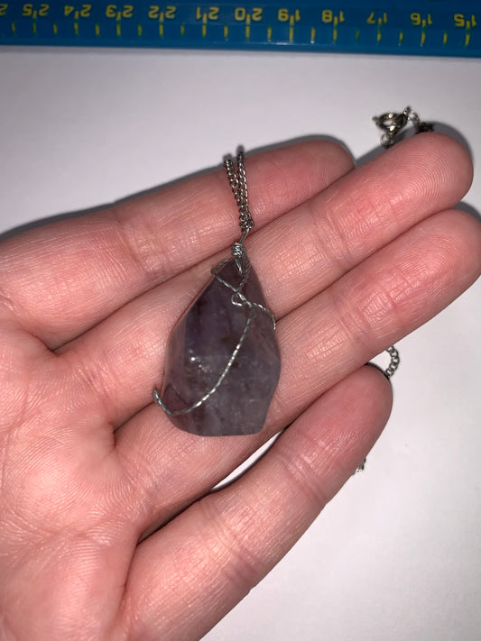 18" Amethyst wire wrap pendant on Cable Chain Necklace
