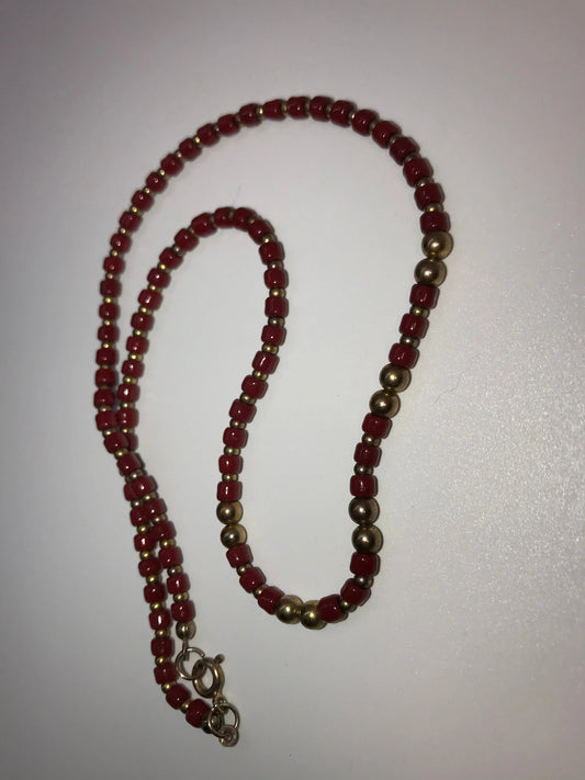 16" Long Red and Gold Beaded Necklace