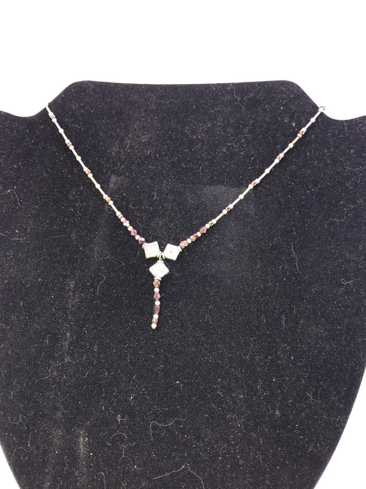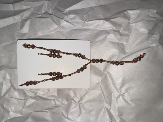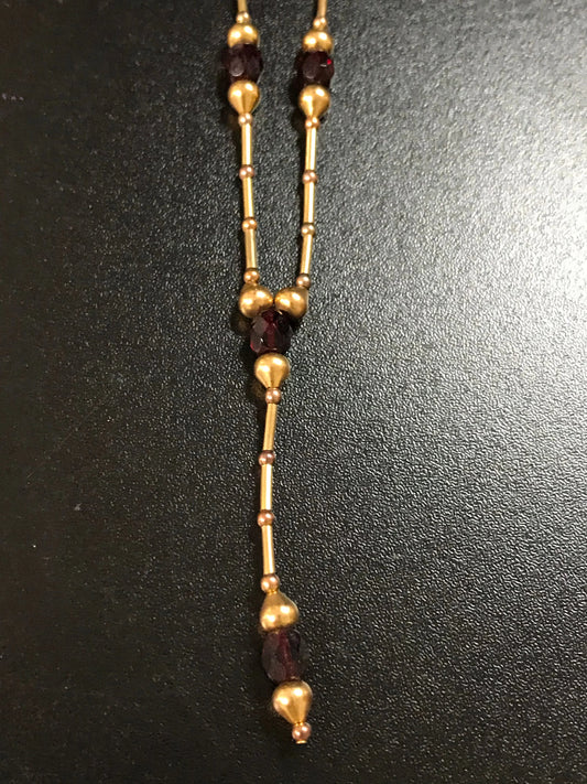 14 1/2" long Green and gold with Obsidian Y Necklace