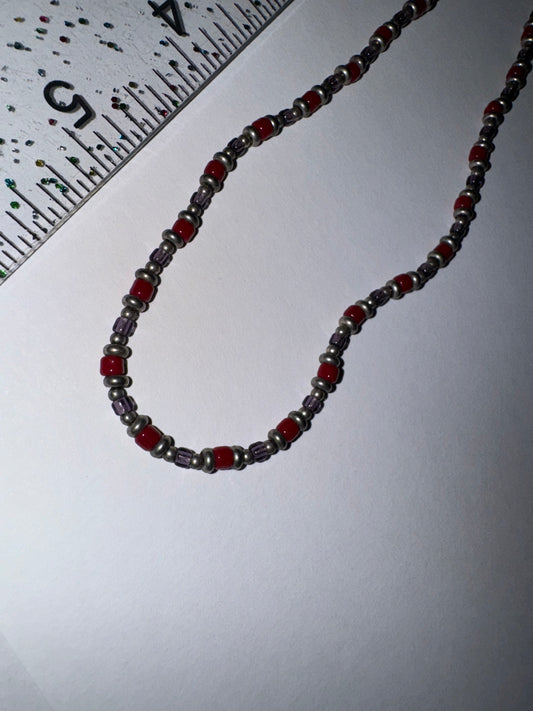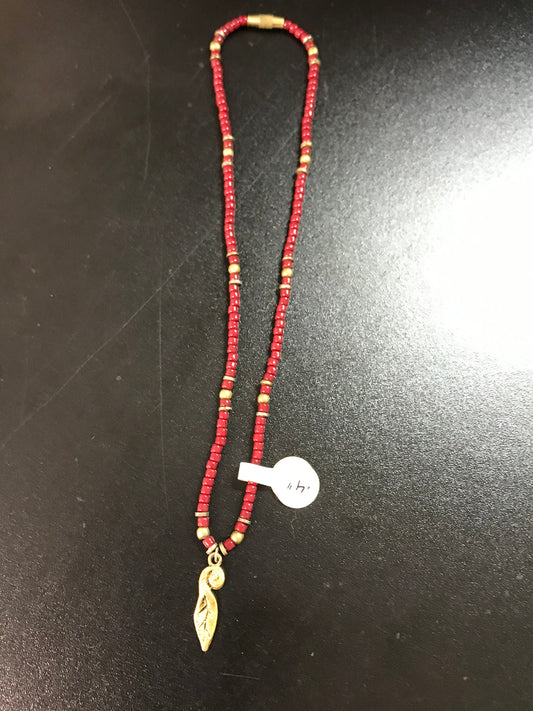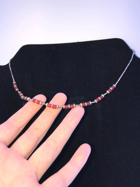 15 1/4" Frosted Orange Red and Silver Beaded Necklace