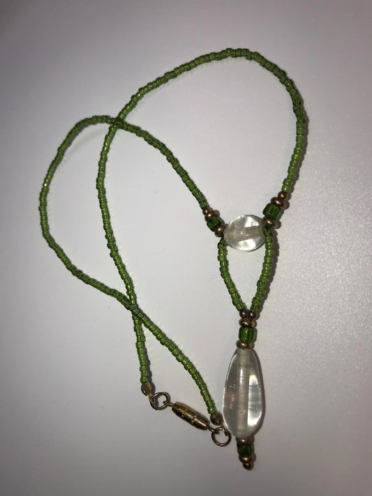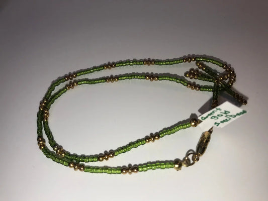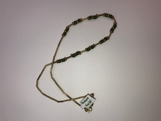 15" Matte Green And Gold Seed Bead Handmade Beaded Necklace