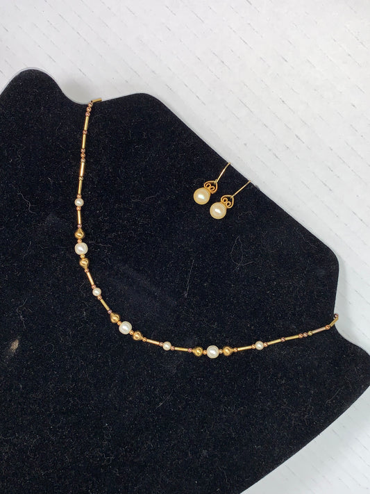 15" Pearl and Gold beaded Necklace and Earrings Set