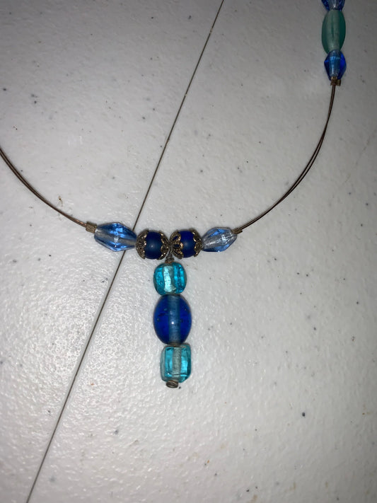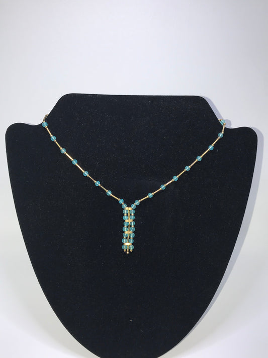 15 1/2" Blue Aquamarine and Gold Handmade Necklace