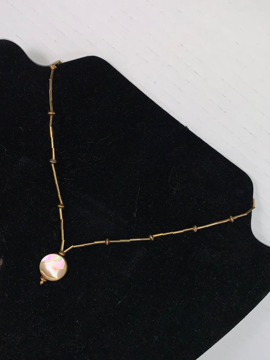15 " Mother of Pearl Shell and Gold Bead Necklace