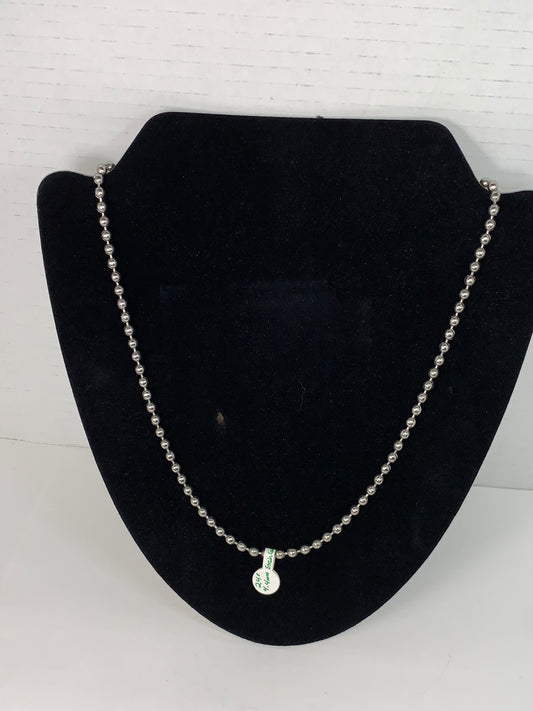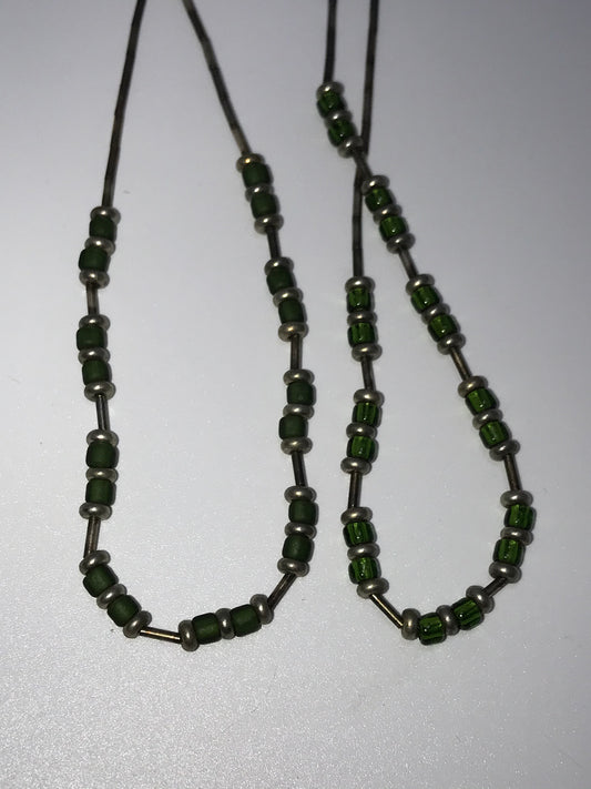 20" long Green w/Mother of Pearl, Light blue Glass beaded necklace