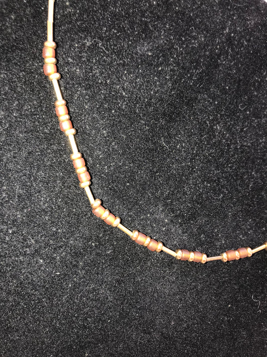 15" Golden Tube Seed Beads And Gold Beaded Necklace