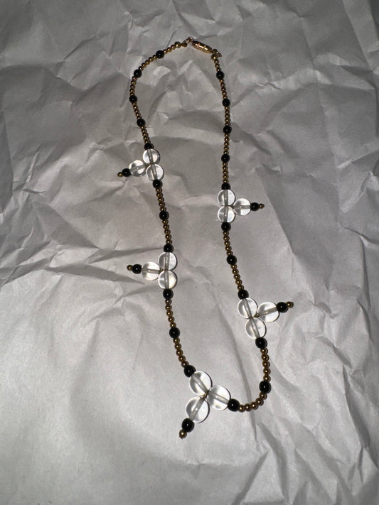 15" Black and Clear Beaded Necklace with Gold-tone Accents